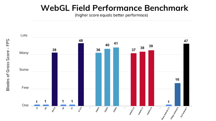 A clearer conclusion is obtainable when analyzing the WebGL performance tests for the displays and media players.