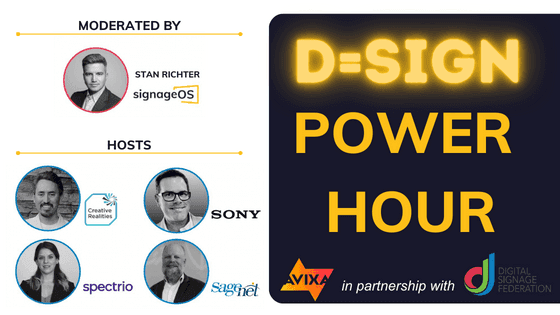 Join us on November 1st, 2023, at 1:00 PM EST for the Design Power Hour webinar. Stan Richter, CEO of signageOS, will be moderating this event sponsored by AVIXA in collaboration with Digital Signage Federation. Explore the "Challenges Within Digital Signage Media Platforms” during the panel session, gaining valuable insights into overcoming common hurdles in cross-platform deployments. Shape your strategy and navigate the complexities of working with diverse platforms to avoid unnecessary mistakes in the process.