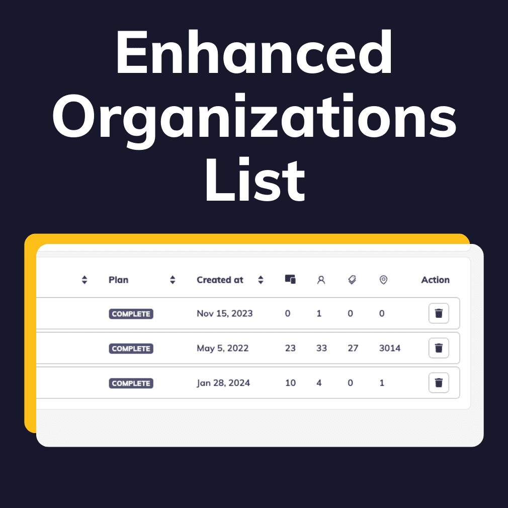 The Organization list now features new metrics, revealing key insights at a glance. Explore device count, user statistics, tags, and location coverage for each Organization, providing comprehensive knowledge instantly accessible without navigating individual profiles.