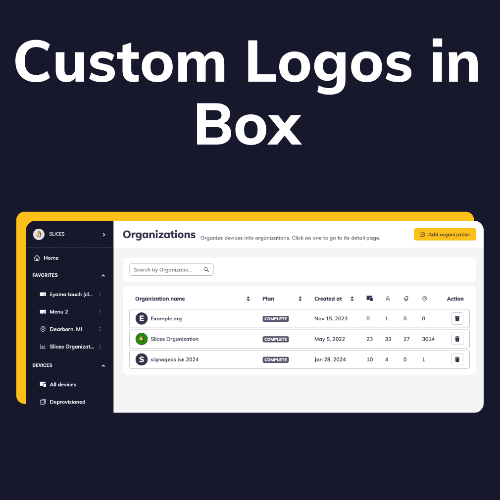 ⭐ Unlock the power of personalization with signageOS Box .You can now easily integrate your company logo into Box and across all Organizations, giving Box a distinct identity and a true sense of belonging.