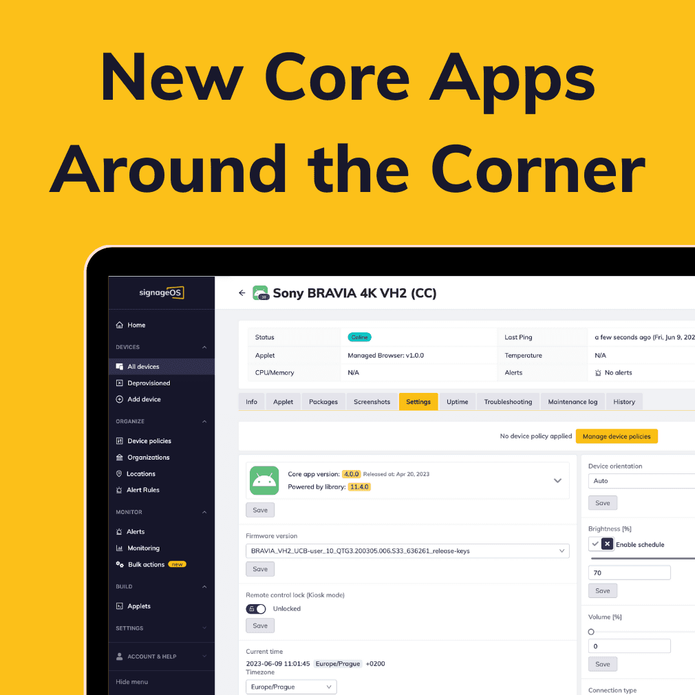 The release candidates for our new core apps are now available, and the production versions will follow shortly. Some of the most prominent features include on-display frame-accurate content synchronization, making your SoC-based video walls work like a charm. Additionally, we have enhanced our debugging listeners for faster troubleshooting, and we are expanding our reporting capabilities.