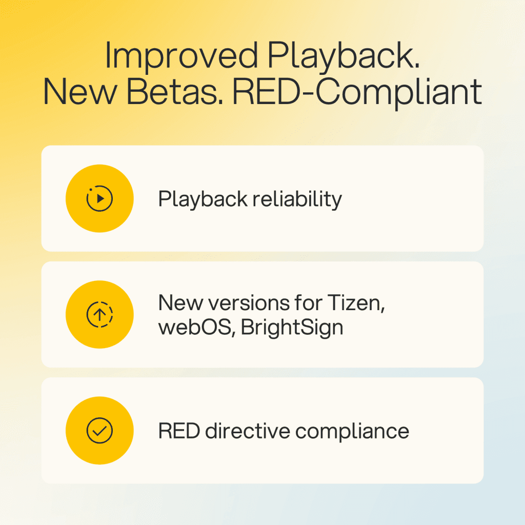 BrightSign’s latest patch includes additional improvements to video playback reliability and debugging options. To comply with the RED directive, Local DWS is now disabled by default.