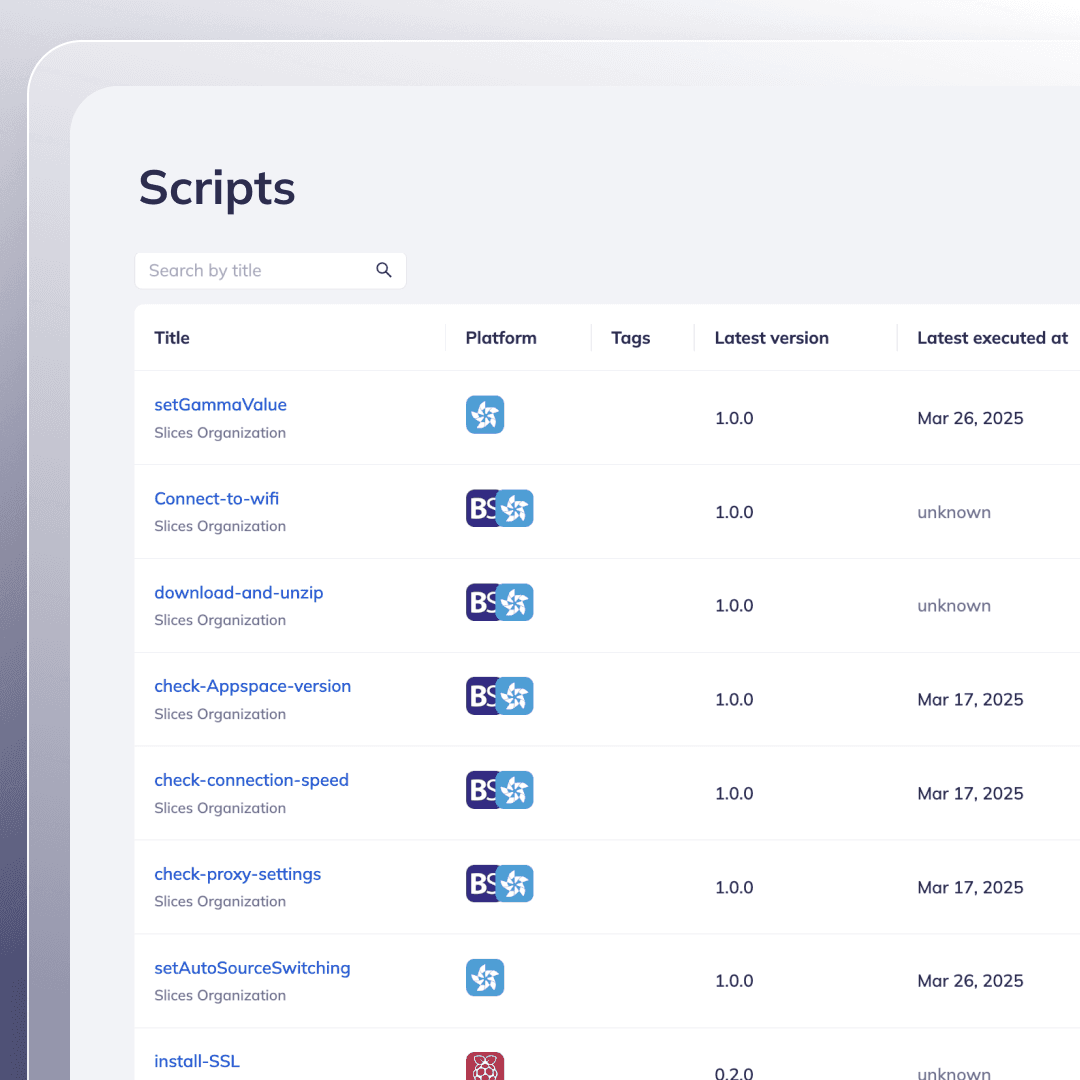 Whether you need to adjust SoC display settings, retrieve a registry dump from BrightSign, push certificates to Linux, or modify the Windows registry, Scripts simplify these tasks!⚡