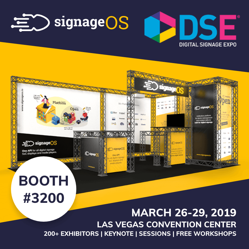 Stop by the signageOS booth #3200 at DSE 2019 to discuss how signageOS is changing the digital signage industry for good!