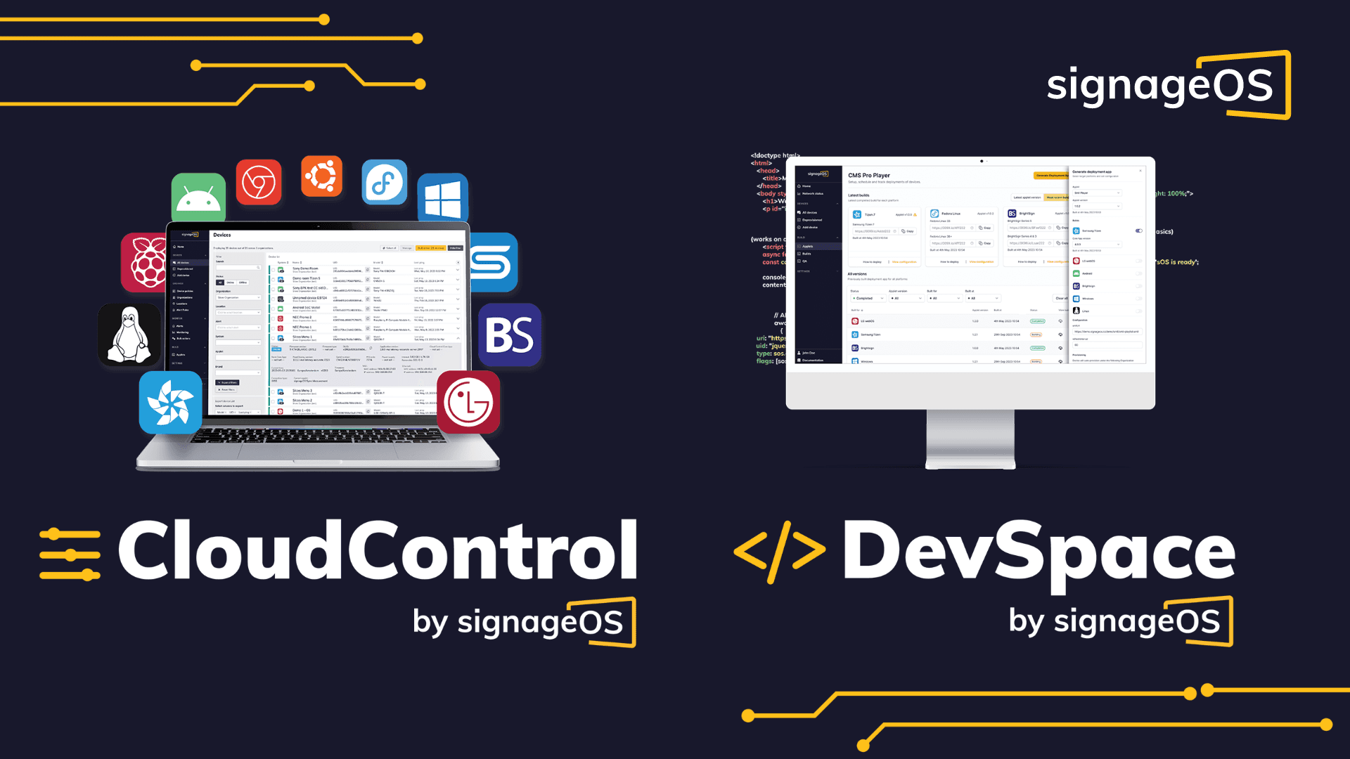 San Francisco, California – June 12, 2023 - signageOS, today announced a split of its core solution into two new products, CloudControl and DevSpace. These products continue to significantly increase the value to any digital signage network by focusing on specific application needs and providing a greater range of capabilities. These introductions are set to provide powerful tools in the form of remote device management and custom native app development, redefining the boundaries of the digital signage industry.