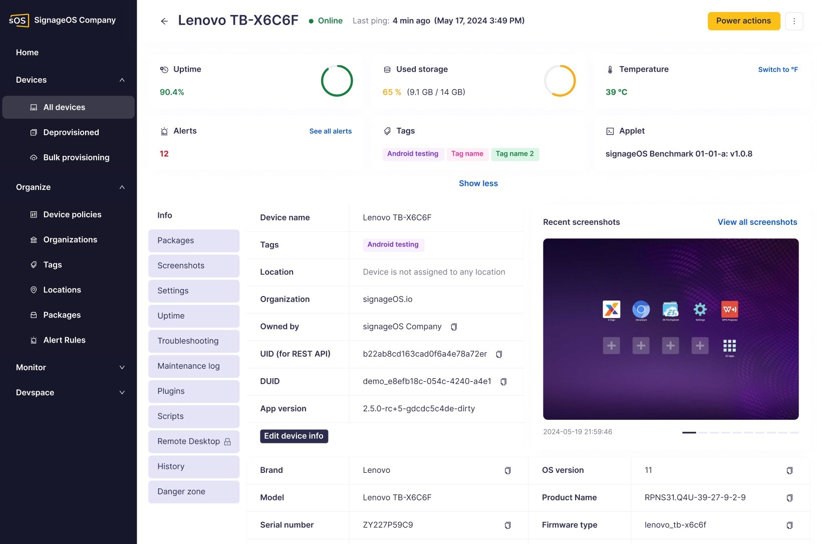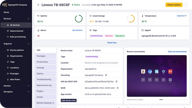 Streamline deployment of your CMS Player, monitor its health directly in the device management console, and perform quick recovery actions.