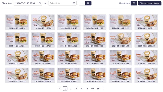Access up to three months of screenshot history for every device to verify content playback and provide reliable proof of play.
