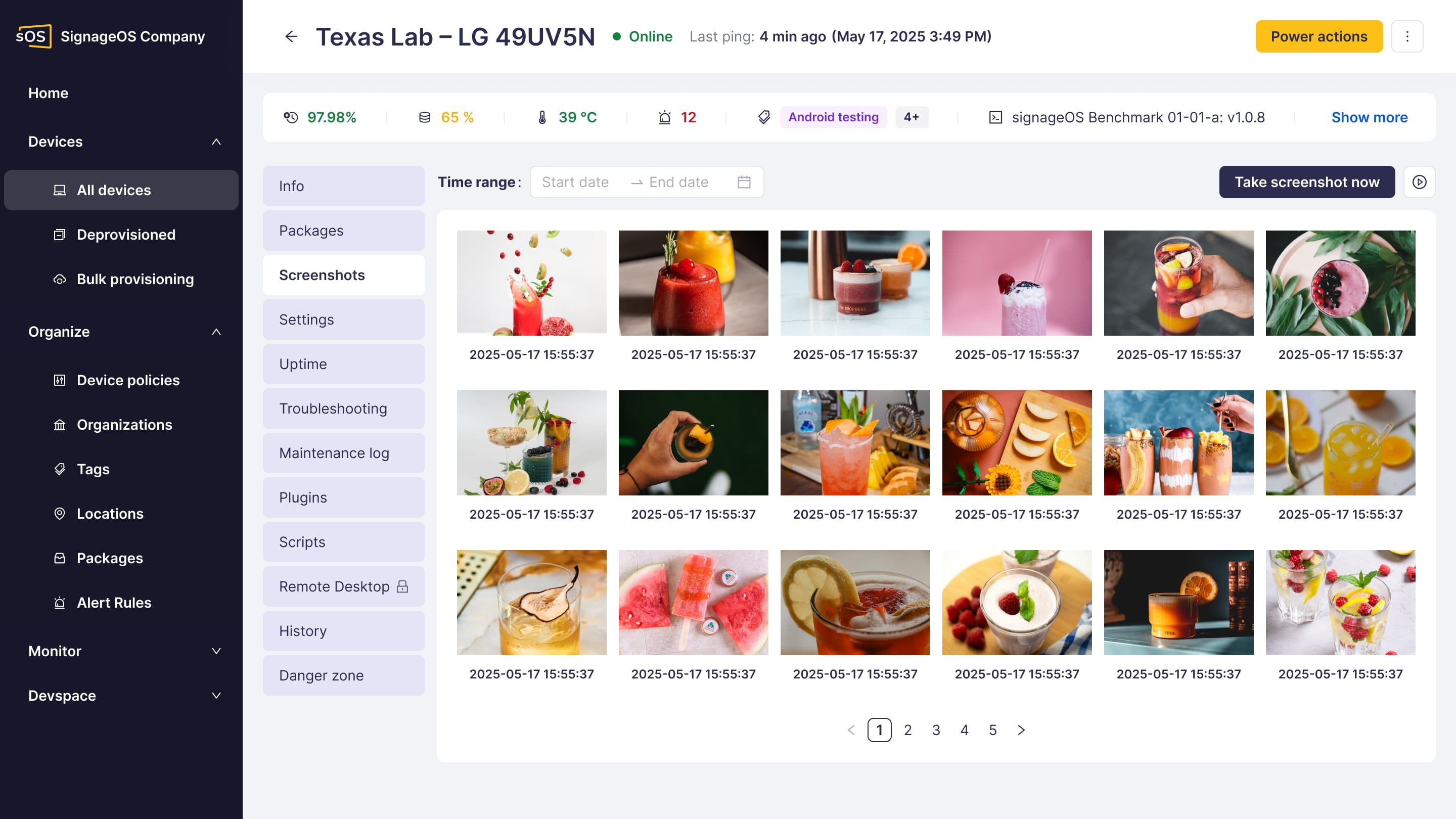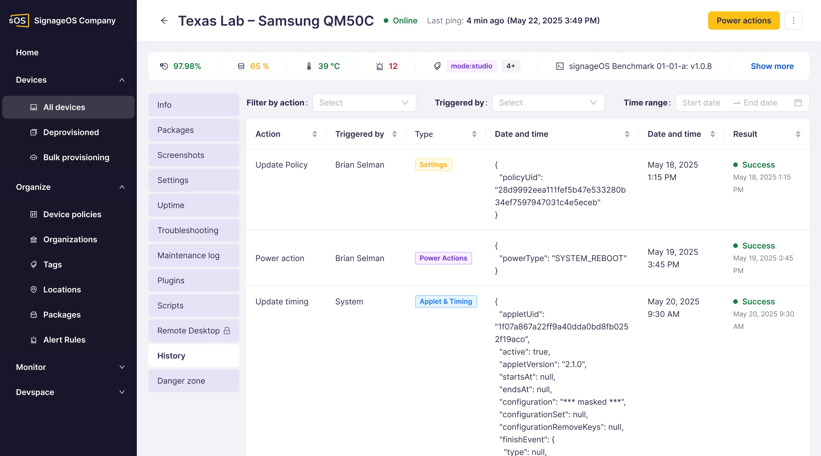 Ensure flawless playback with live device diagnostics and proof-of-play screenshots, so you can ensure content is always running as intended.