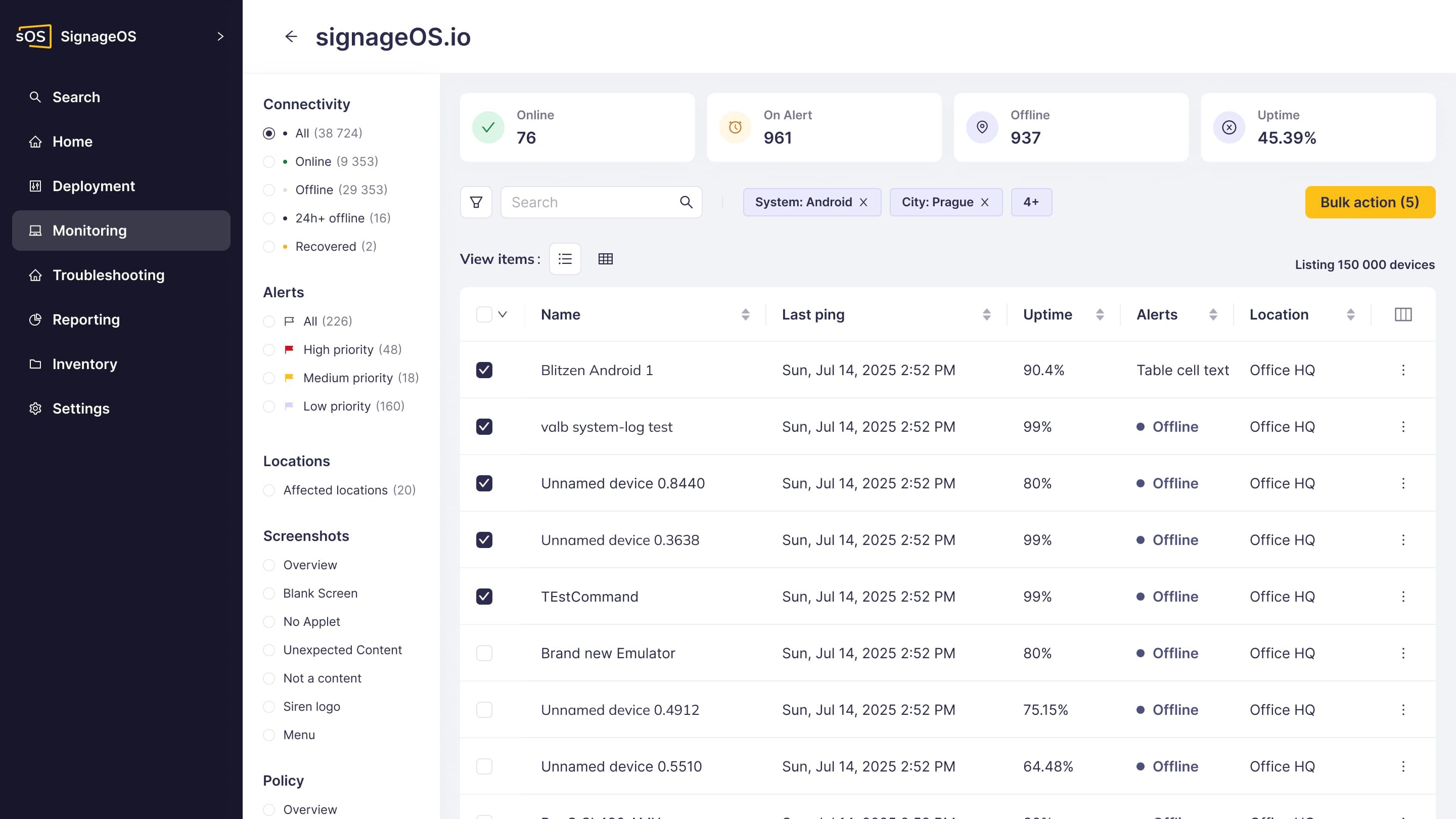 Get notified instantly about changes in device status, connectivity, health metrics, and more, so you can respond before small issues become big problems.