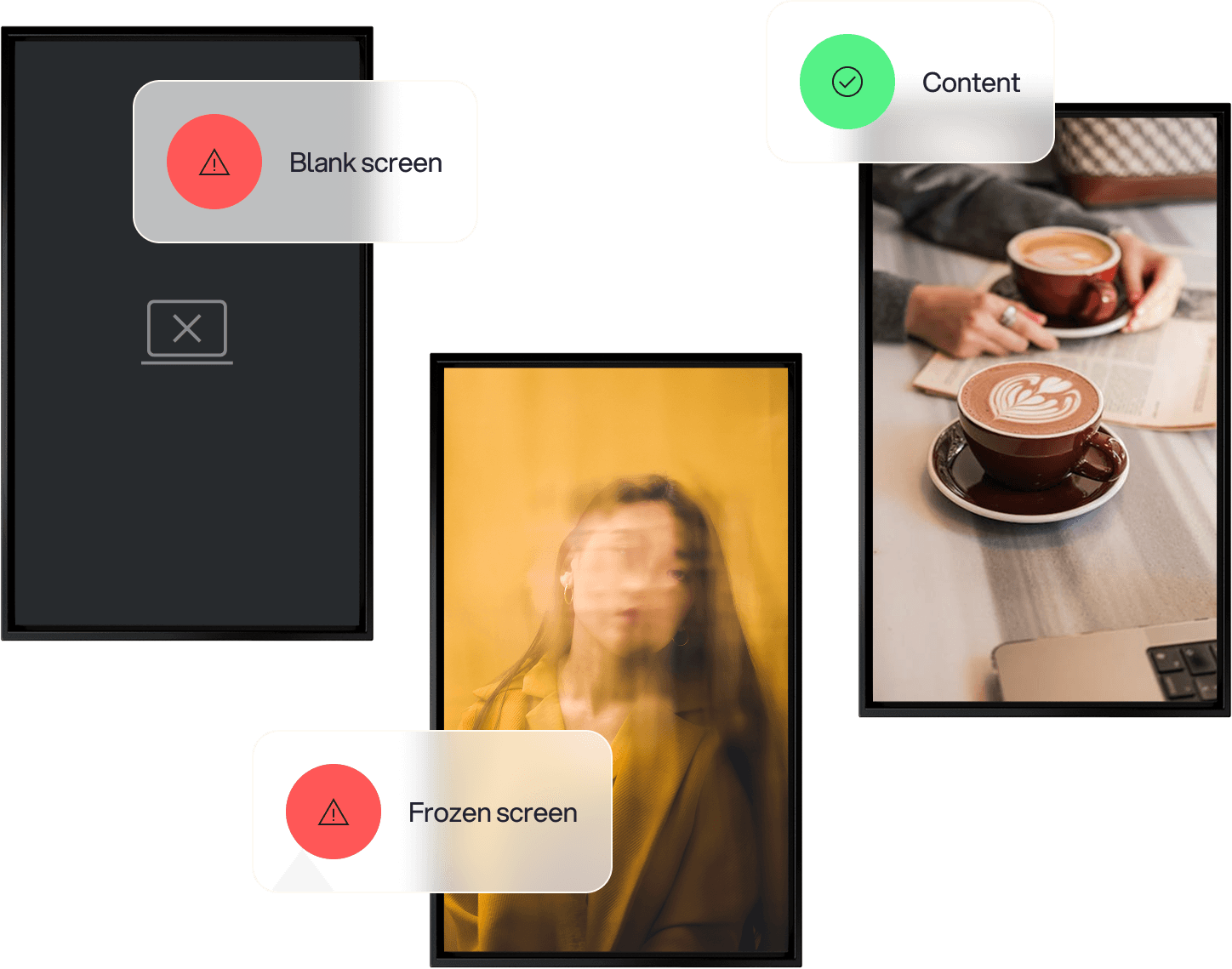 Be proactive. Content Guard instantly detects and alerts you on content disruptions like blank screens, frozen content, modals, and pop-ups or Windows desktop sessions.